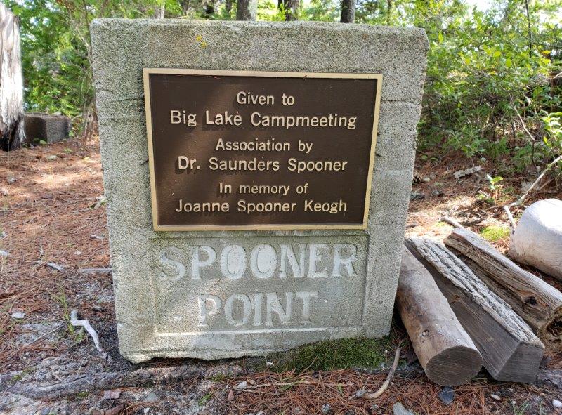 Spooner Point was donated to Big Lake Campmeeting Association in 1982 by Dr. Saunders Spooner of Providence, Rhode Island, in memory of his beloved daughter Jeanne Spooner Keogh. Dr. Spooner gave the land for Big Lake Campmeeting to use for charitable and religious purposes including recreational activities. We honor the wishes of Dr. Spooner and the memory of Jeanne Spooner Keogh by allowing all persons to use, recreate, relax and enjoy Gods' beauty on this peaceful point.